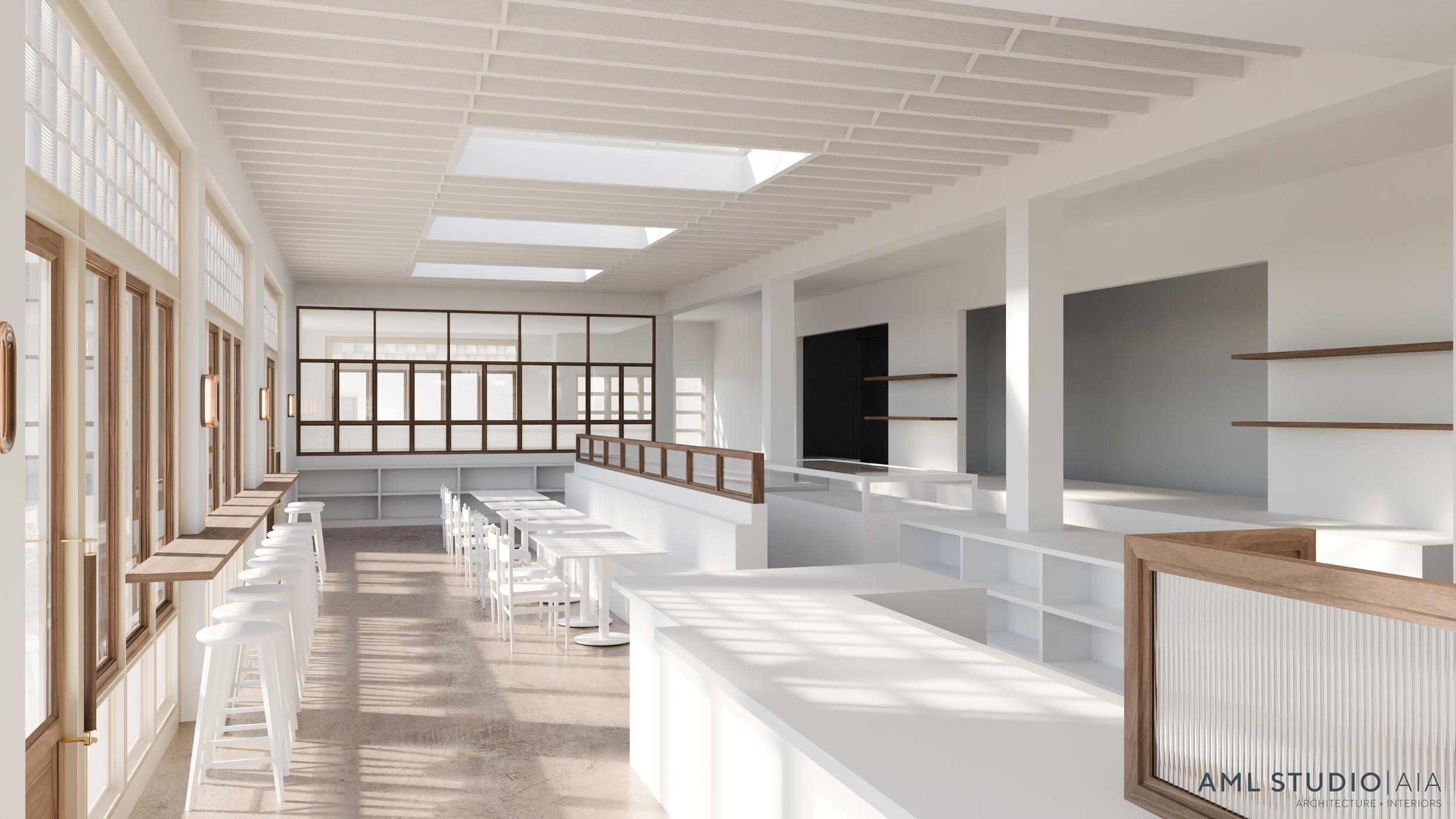 Reimagining the neighborhood restaurant as an all-day destination, this 3,500 sq ft concept transforms an existing warehouse into a warm, thoughtfully curated environment in West Palm Beach. The adaptive reuse of a once-derelict structure prioritizes preservation, character, and layered materiality, creating a backdrop for great coffee, artisanal pastries, and a full breakfast-and-lunch menu. Intuitive circulation, moments for pause, and a small grab-and-go grocery element support everyday rituals, while the design balances industrial heritage with an elevated, approachable sensibility — currently in development.