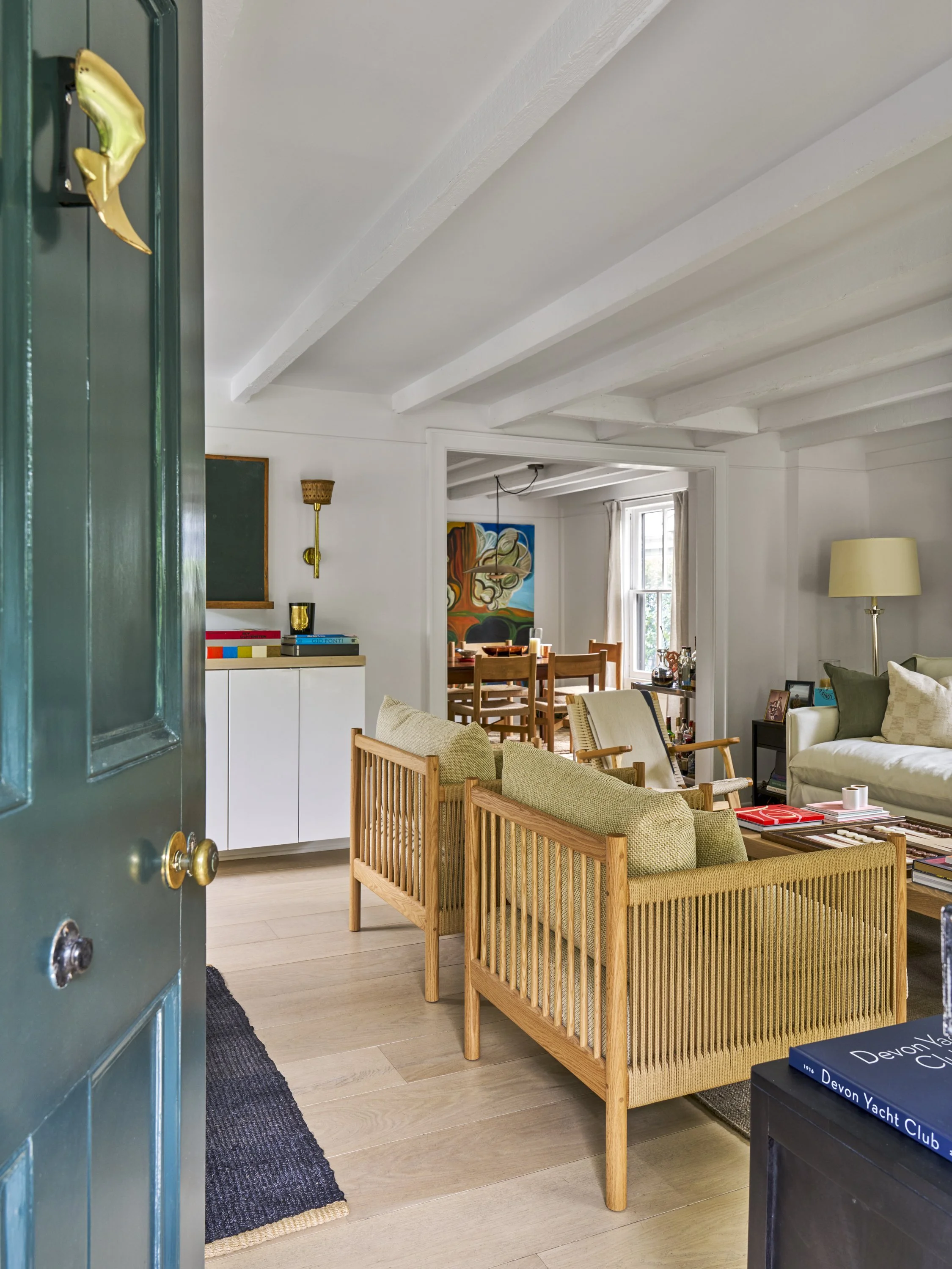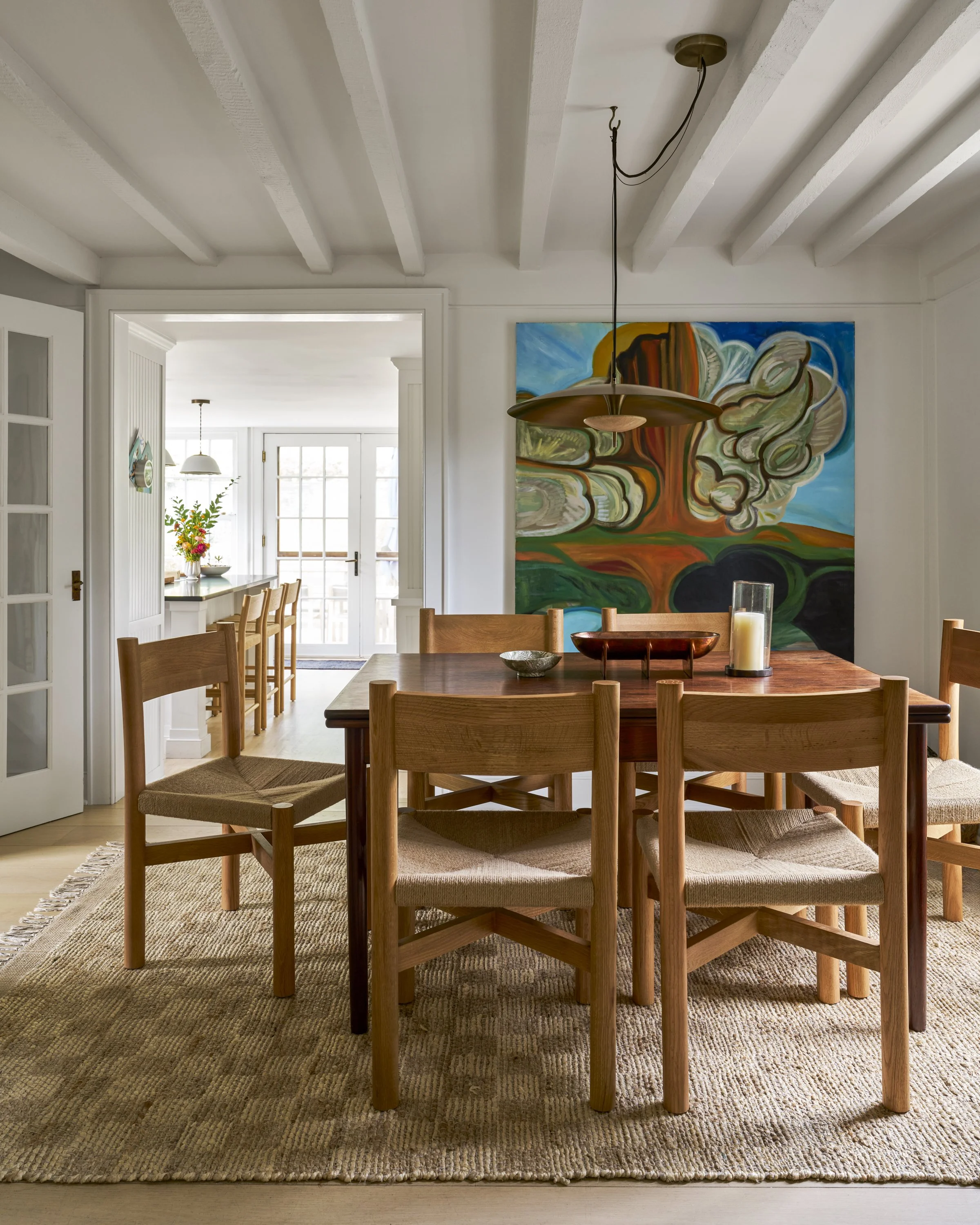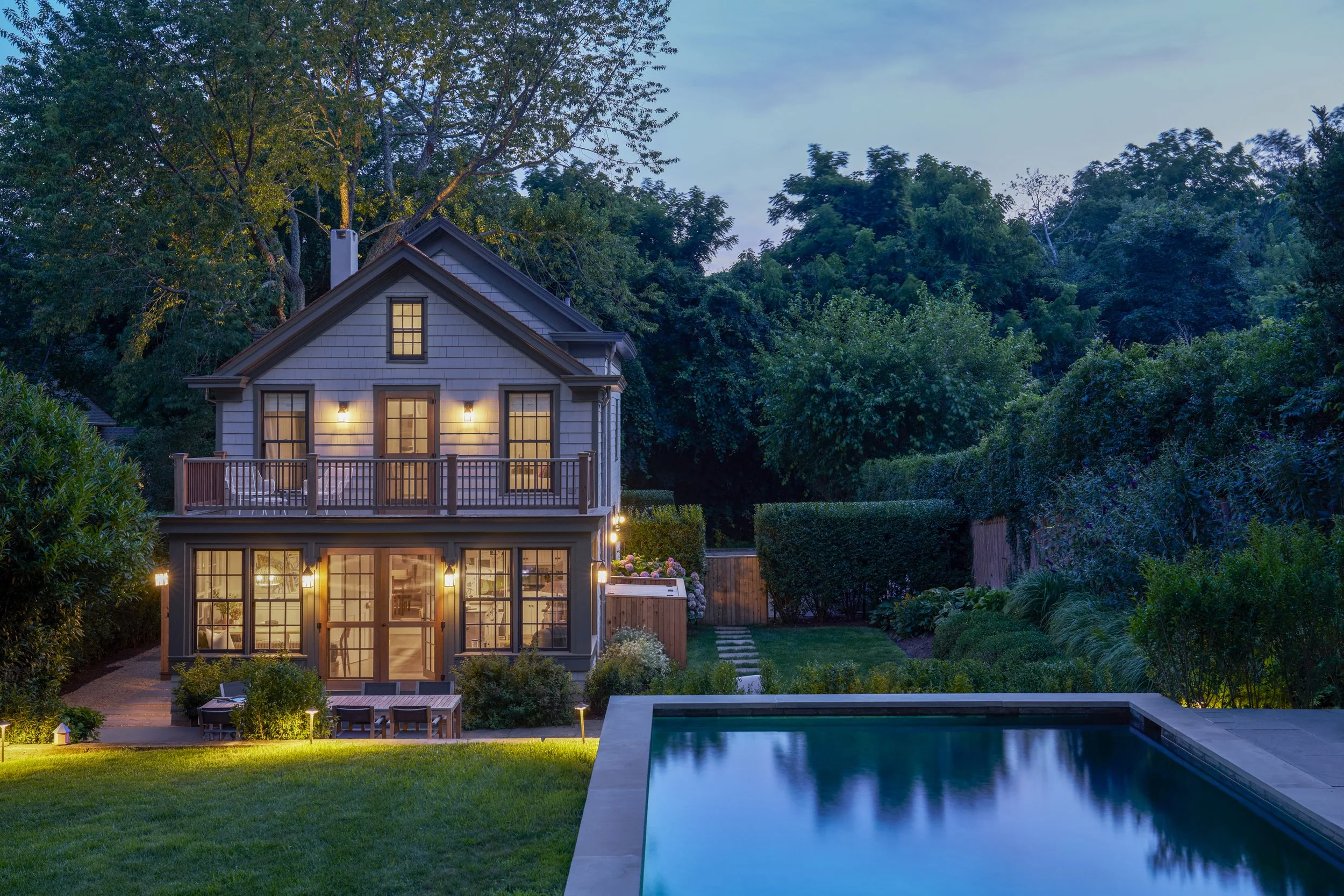 Inside, the design strikes a deliberate balance between past and present—pairing restored millwork with contemporary art, furnishings, and refined finishes. A traditional Sag Harbor paint palette and classic woodworking details reinforce the home’s heritage, while modern interventions introduce openness and natural light. The interiors retain the intimacy of smaller rooms and lower ceilings, creating a layered spatial experience. The result is a harmonious dialogue between historic craftsmanship and contemporary design.
