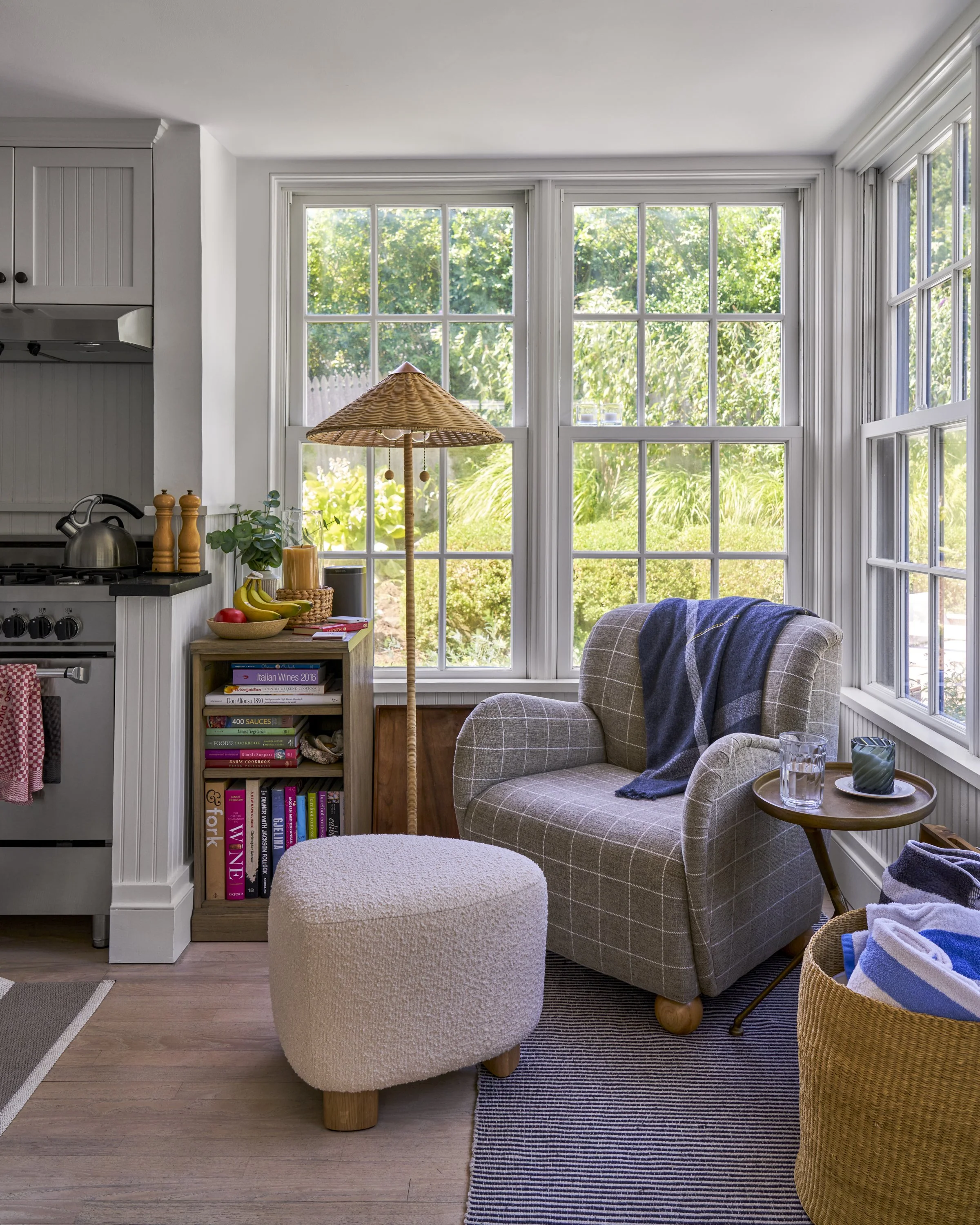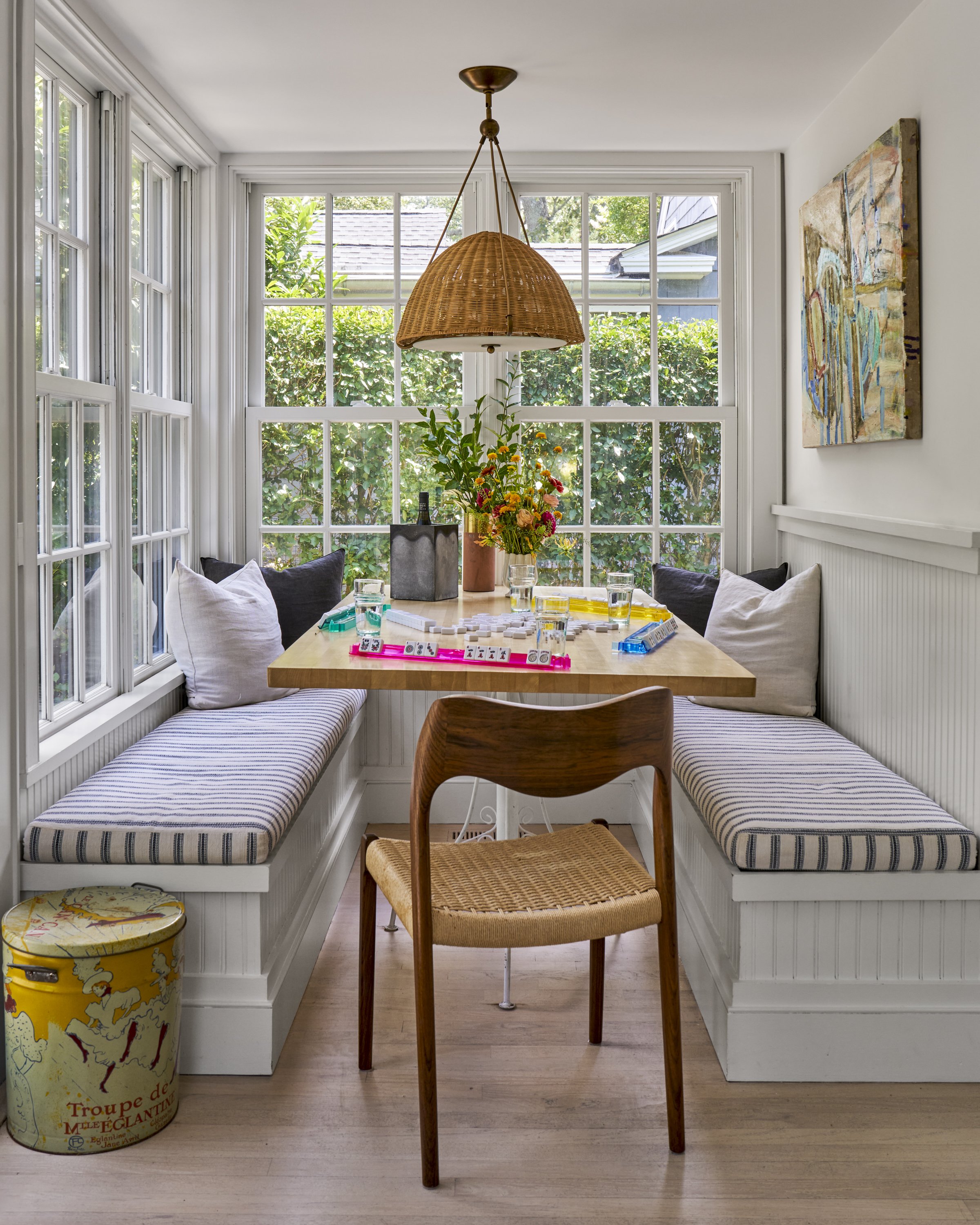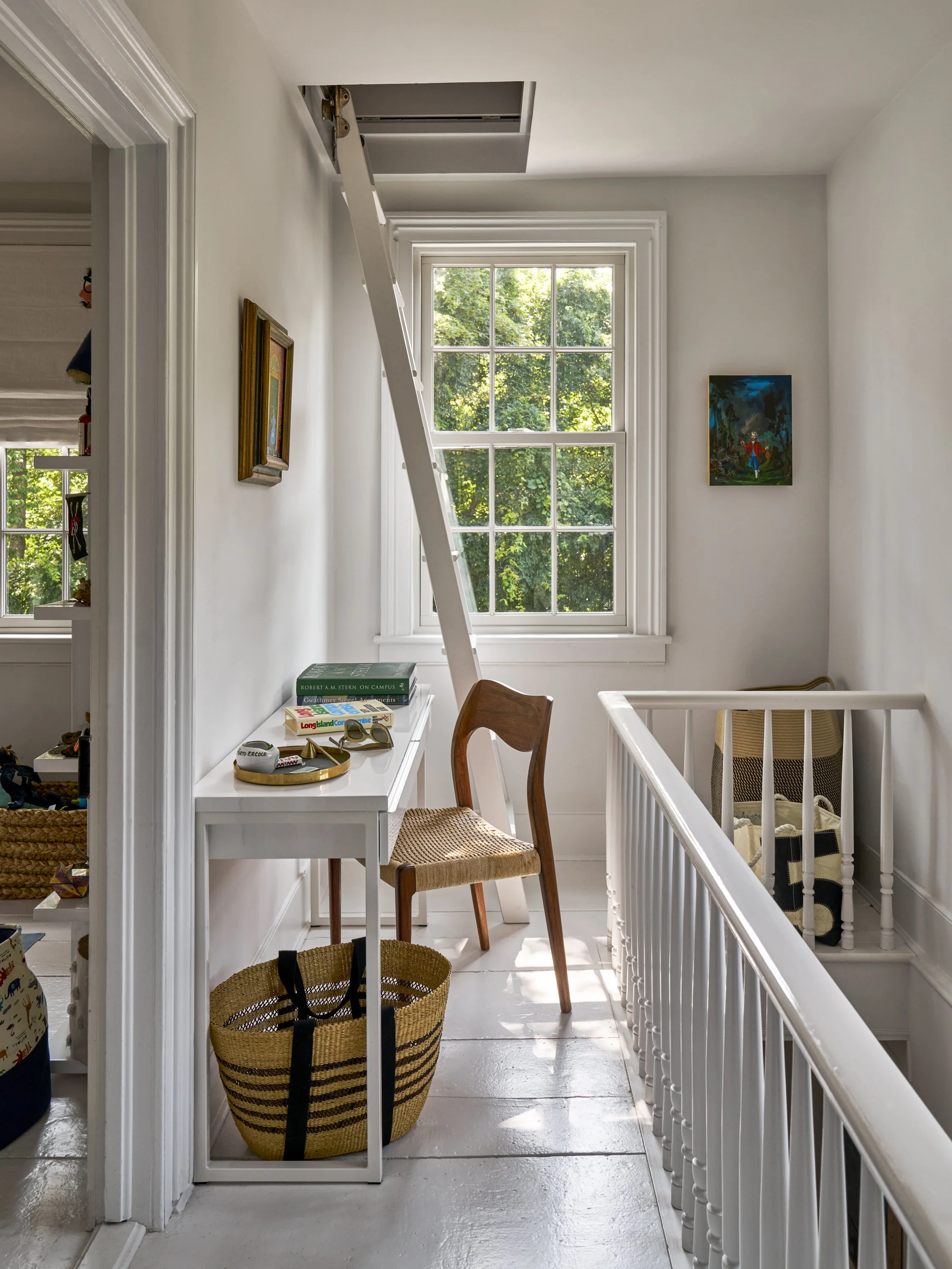 Inside, the design strikes a deliberate balance between past and present—pairing restored millwork with contemporary art, furnishings, and refined finishes. A traditional Sag Harbor paint palette and classic woodworking details reinforce the home’s heritage, while modern interventions introduce openness and natural light. The interiors retain the intimacy of smaller rooms and lower ceilings, creating a layered spatial experience. The result is a harmonious dialogue between historic craftsmanship and contemporary design.